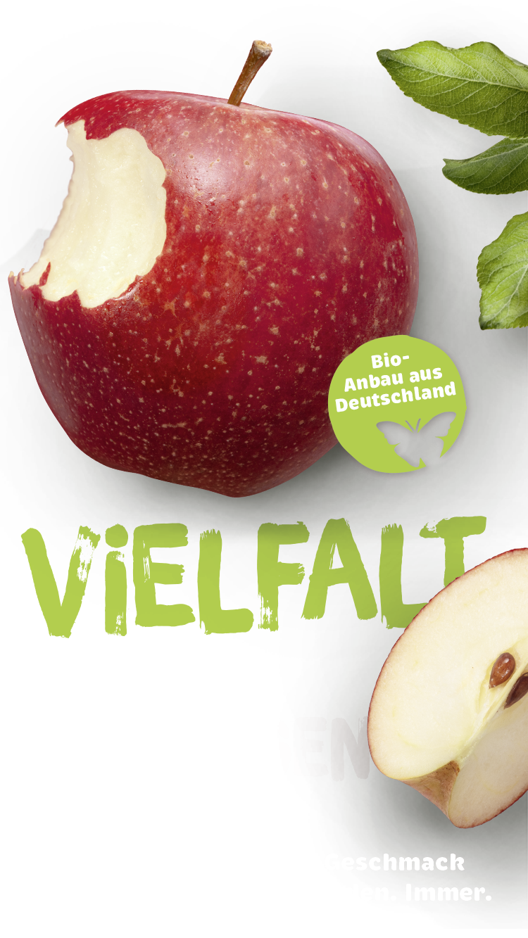 Alle Äpfel der Marke stammen aus deutschem Bio-Anbau und tragen ein Bio-Verbandszeichen.